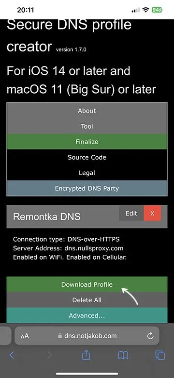 add dns profile ios