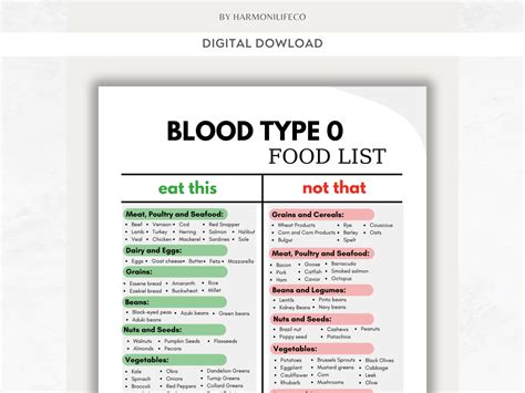 blood type 0 diet chart