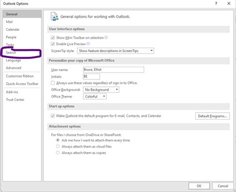 how to improve search function in outlook