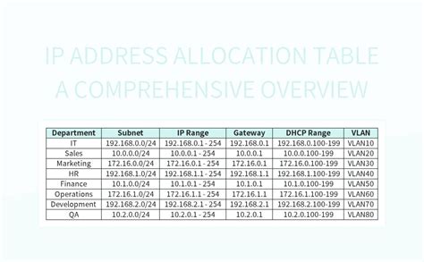 ip addressing table example