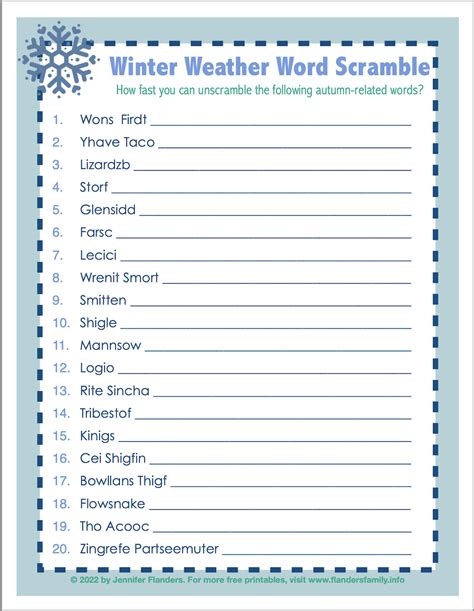 winter weather word scramble