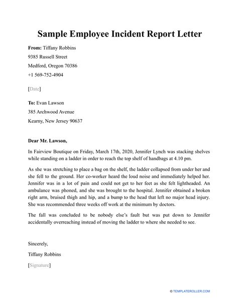 work incident report sample letter